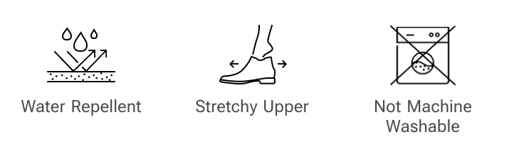 鞋面採用防潑水針織材質,輕盈、服貼又具彈性,即使在陰雨天也能保持乾爽與時尚。