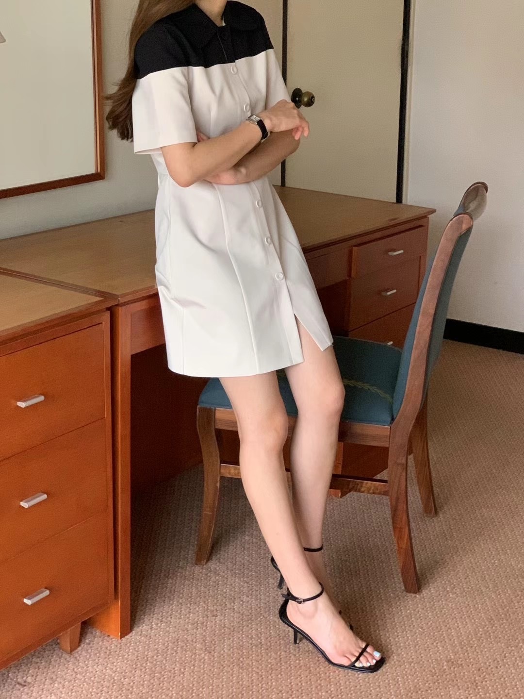 都市女孩看過來,簡潔俐落的設計,襯衫領洋裝,就是經典時尚俗稱Minimalist Design Look。